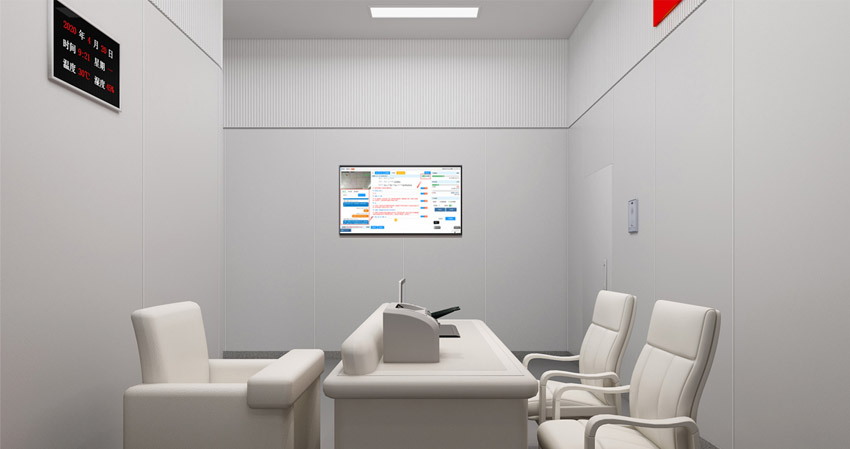 固定式約談(談話)記錄系統(tǒng)可通過(guò)485通信方式,將環(huán)境溫濕度信息顯示屏采集到的溫濕度信息即時(shí)疊加于錄錄畫(huà)面;